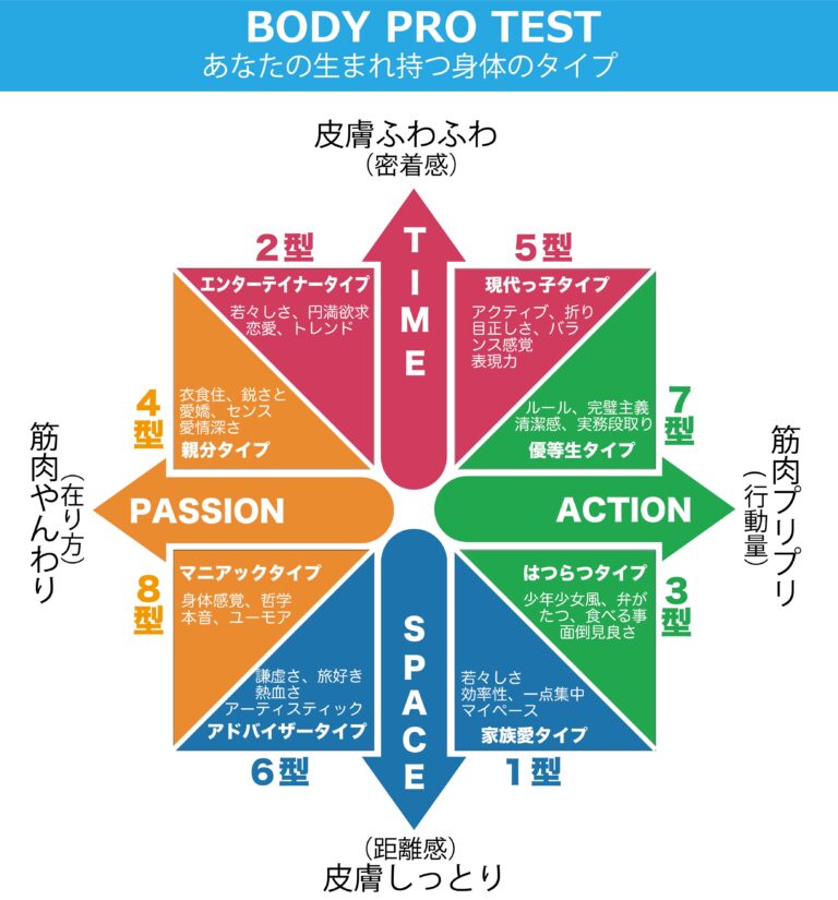 『皮膚・筋肉・背骨』を基にした整体施術10万件の治験データをから、出生日であなたに合った健康活性法を分析・診断できるカラダのタイプ診断『BODY PROFILE TEST』。